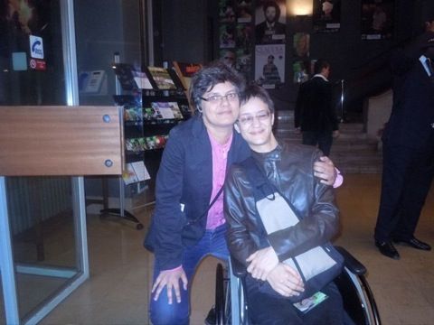 J’arrive en taxi. Le chauffeur m’aide à aller jusqu’à mon fauteuil roulant qu'il avait mis un peu loin de la voiture en raison des marches. Ensuite, de nouveau des marches pour entrer dans le théâtre. Je demande de l’aide et remercie ceux qui m’ont accompagnée. Maintenant je suis bien au chaud, je demande ma place réservée. Puis on me dit d'attendre que tout le monde soit entré dans la salle car je dois être placée dans l’allée centrale. J’attends donc sagement mon tour. Enfin, je suis dans la salle, le concert commence peu de temps après.